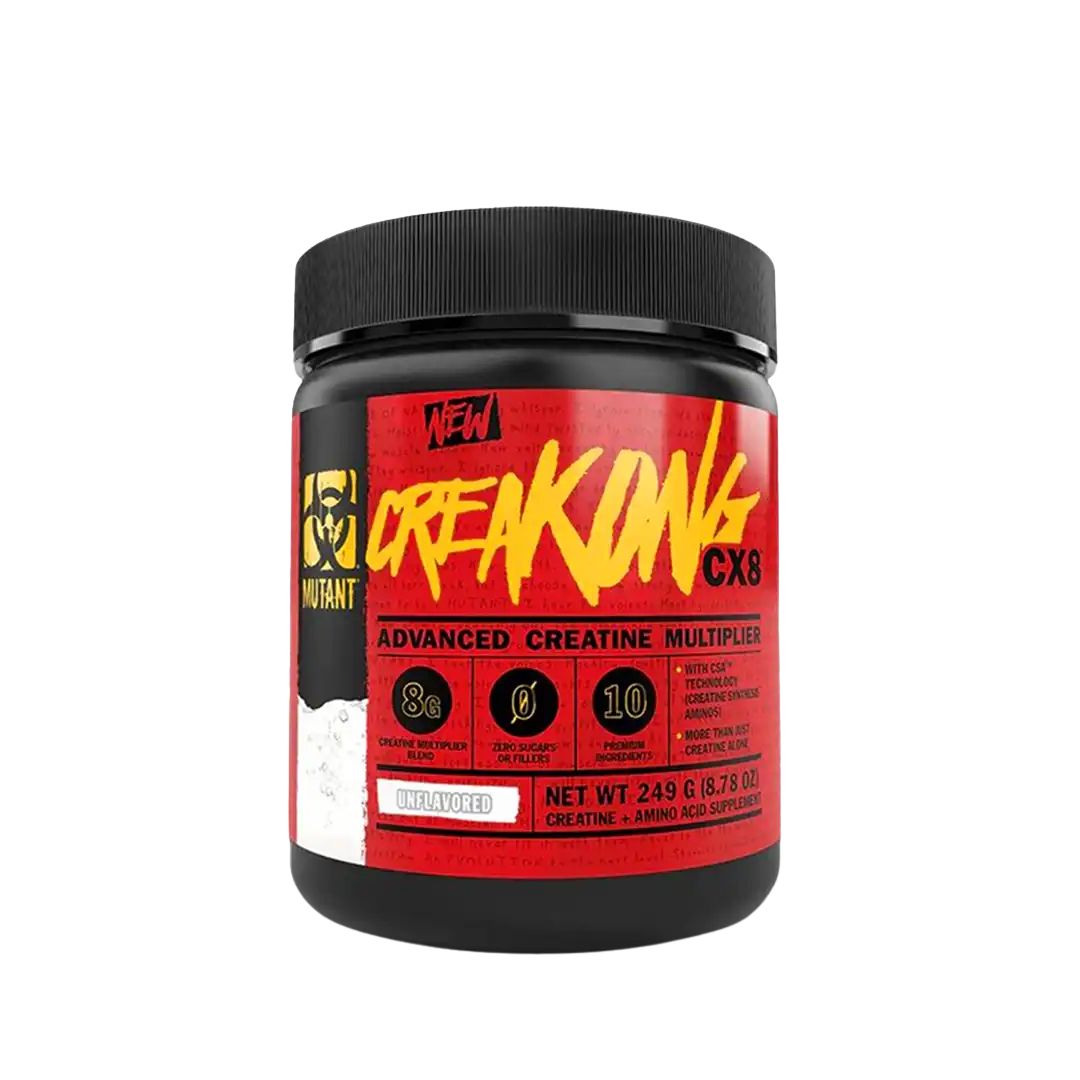 Creakong Mutant es una fórmula avanzada de creatina monohidratada pura, diseñada para aumentar la fuerza, el rendimiento y el volumen muscular. Contiene una mezcla de tres tipos de creatina de alta calidad para una absorción y efectividad superiores. La presentación de 300 g rinde aproximadamente 75 porciones.